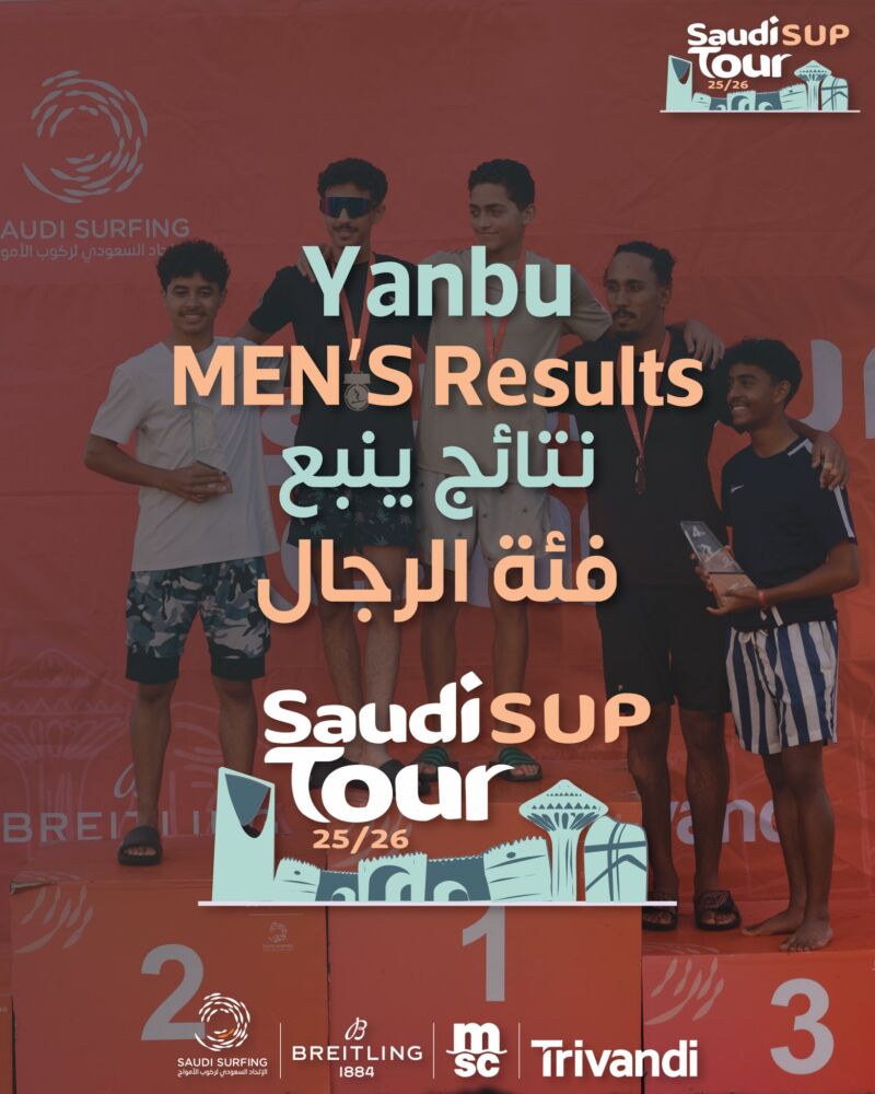 مبارك لأبطال فئة الرجال في الجولة الخامسة من Saudi SUP Tour – ينبع! 🏆🌊